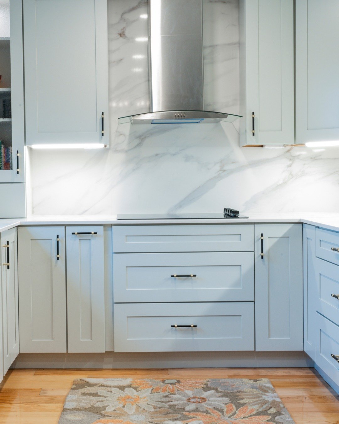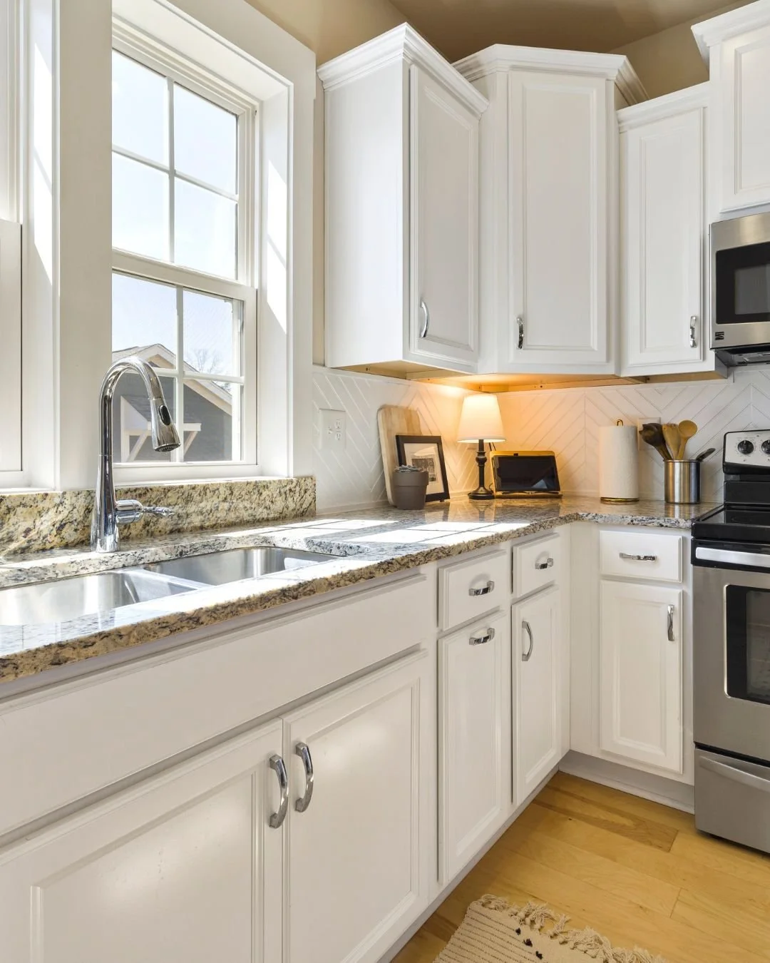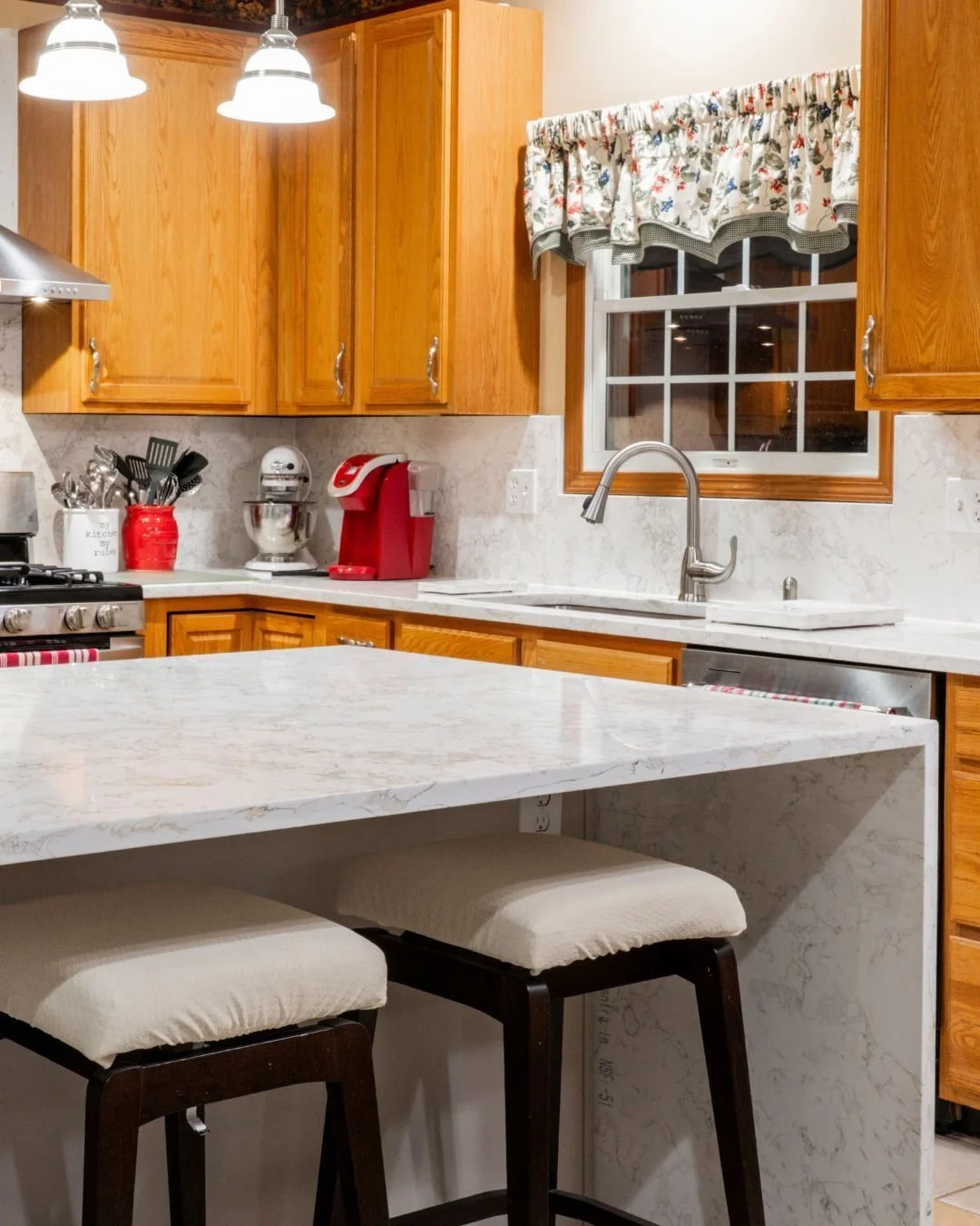 Granville, Ohio Kitchen with White Quartz and Full-Height Backsplash