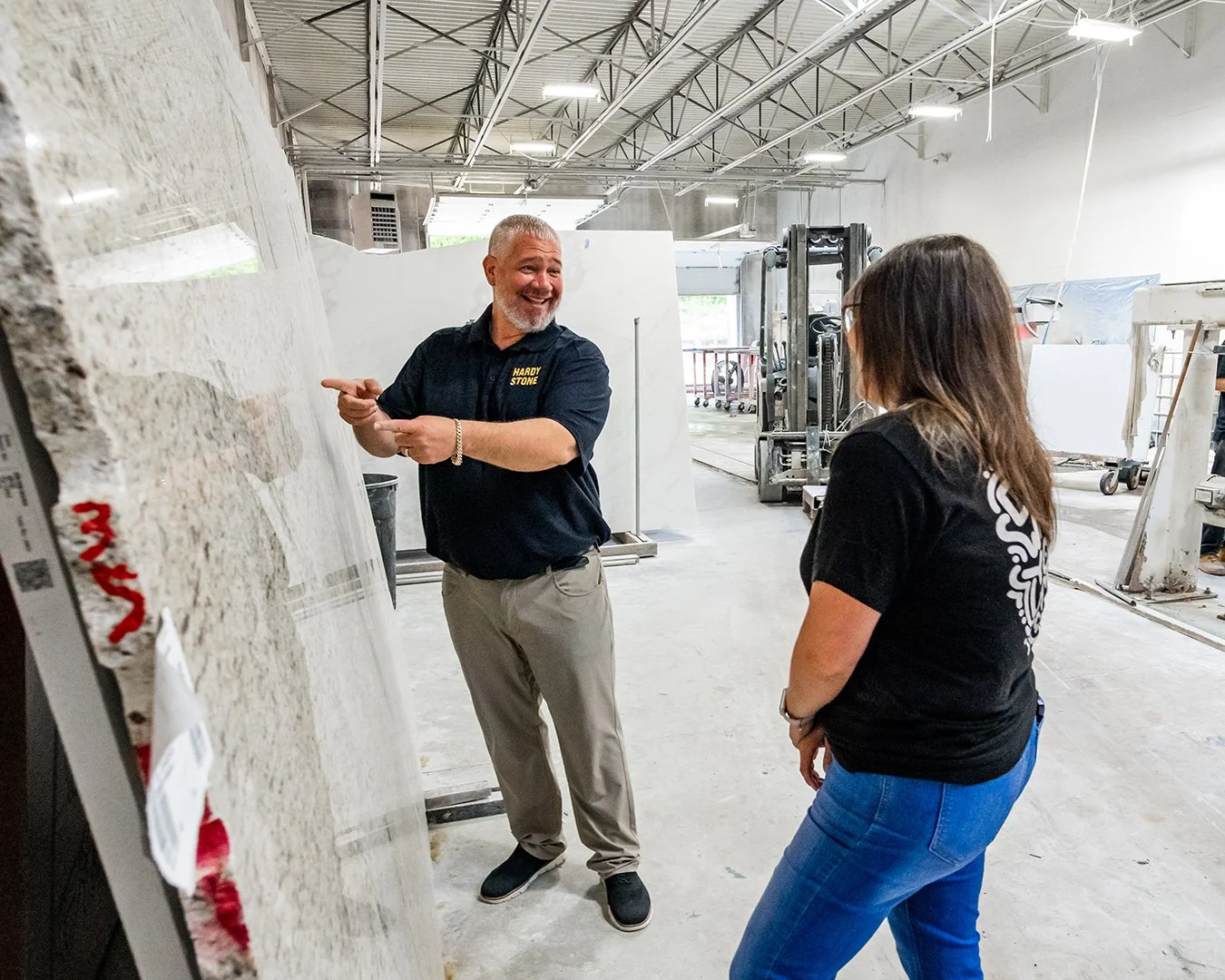Walk through full-size countertop displays, get expert advice, and hand-select your perfect stone—all with zero pressure.