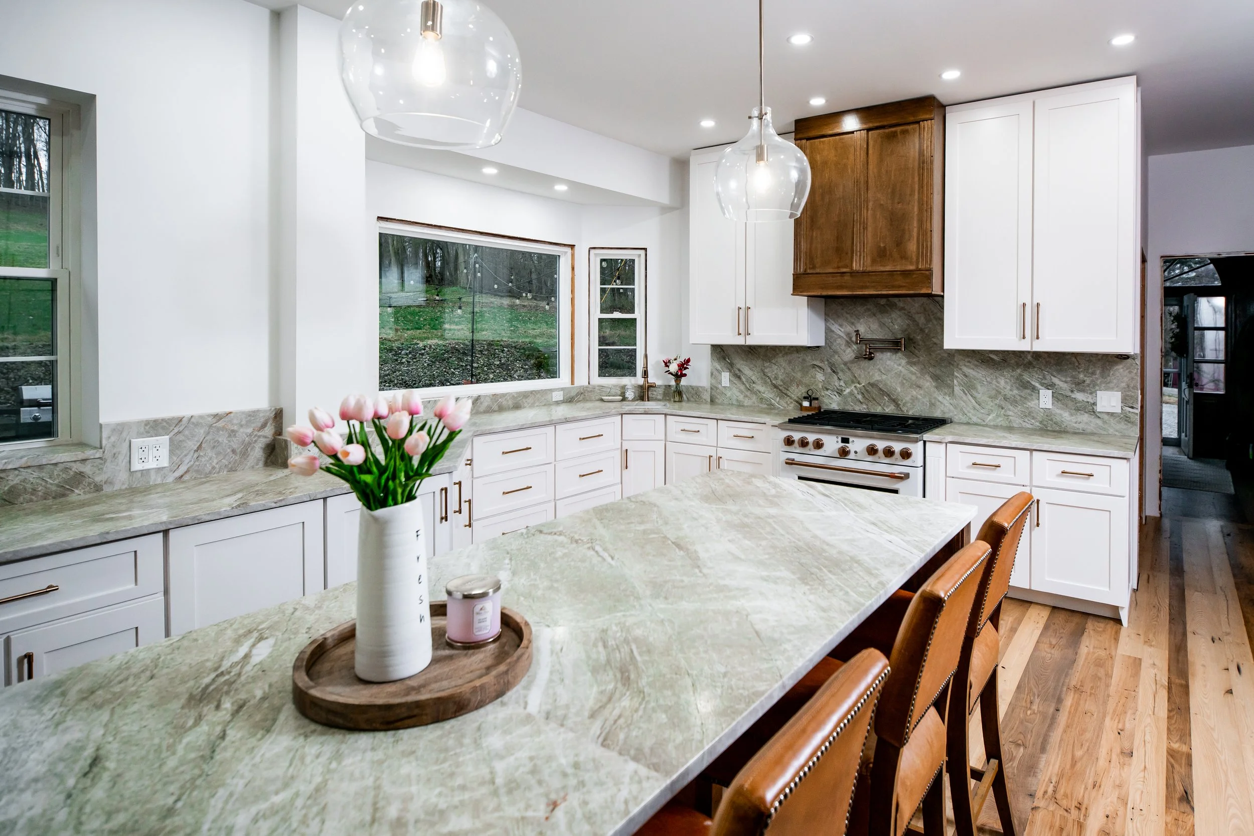 Granville, Ohio Kitchen with White Quartz and Full-Height Backsplash